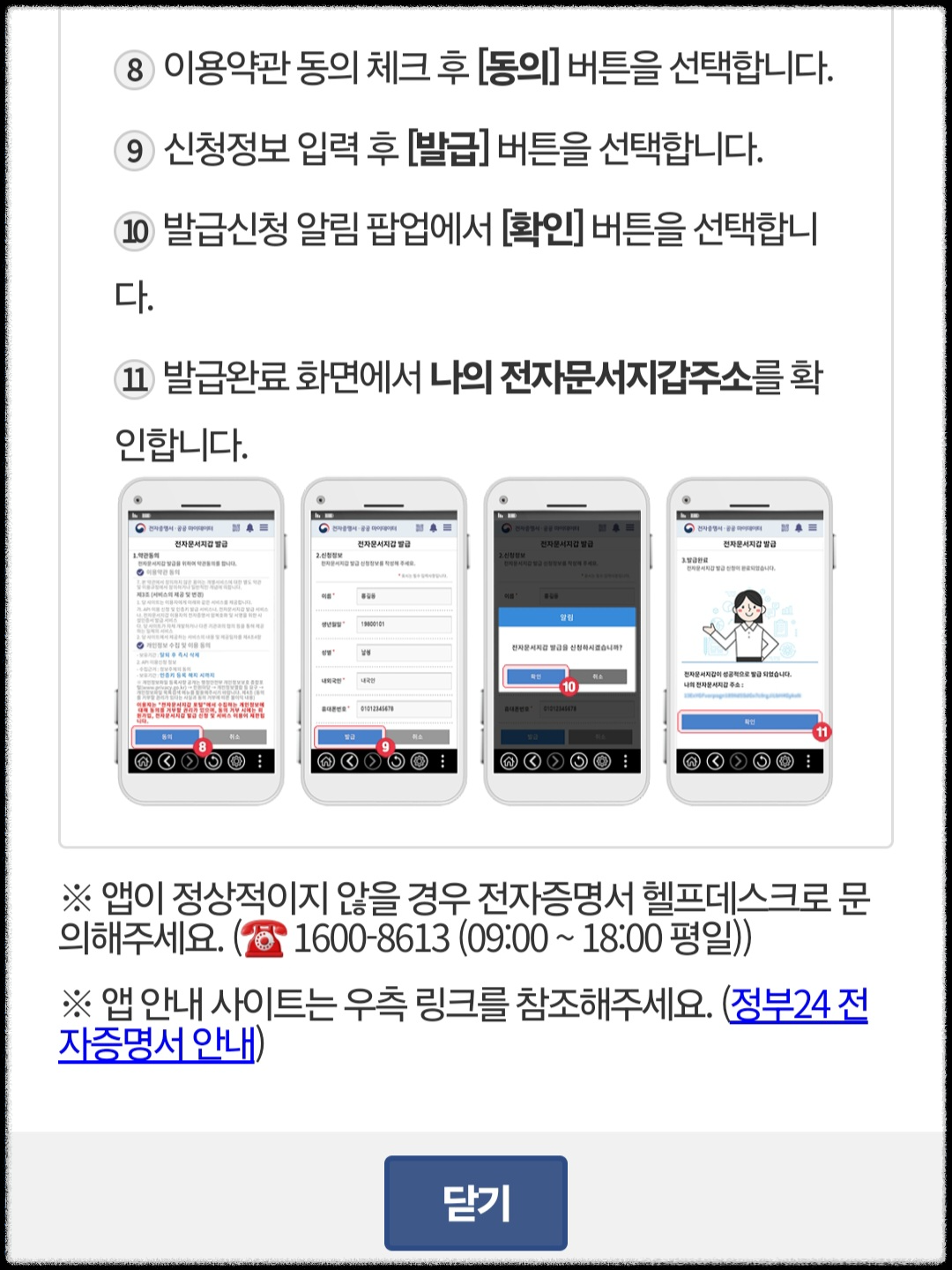 아래의 순서대로 따라하시면 핸드폰 전자문서지갑에 저장할 수 있습니다.