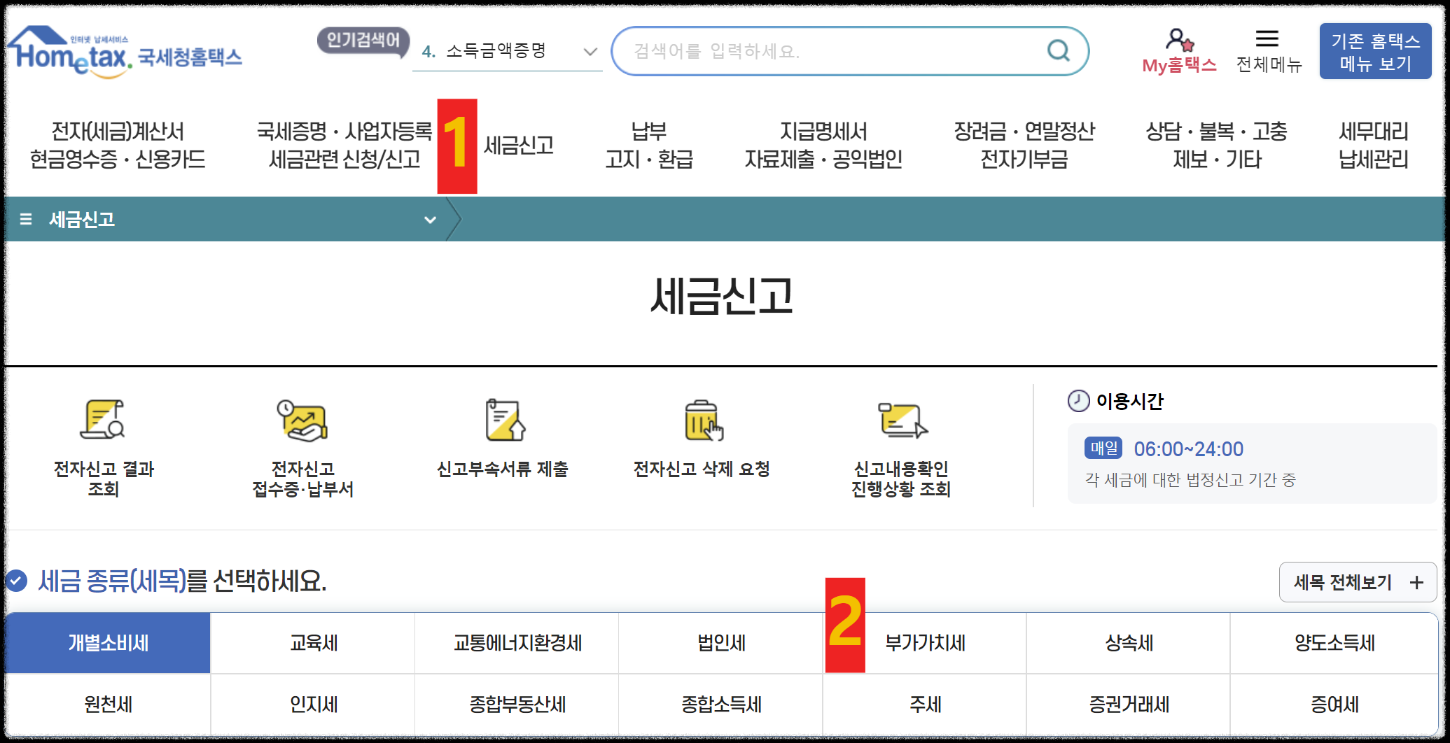 아래는 🔍홈택스에서 신고하는 절차입니다.